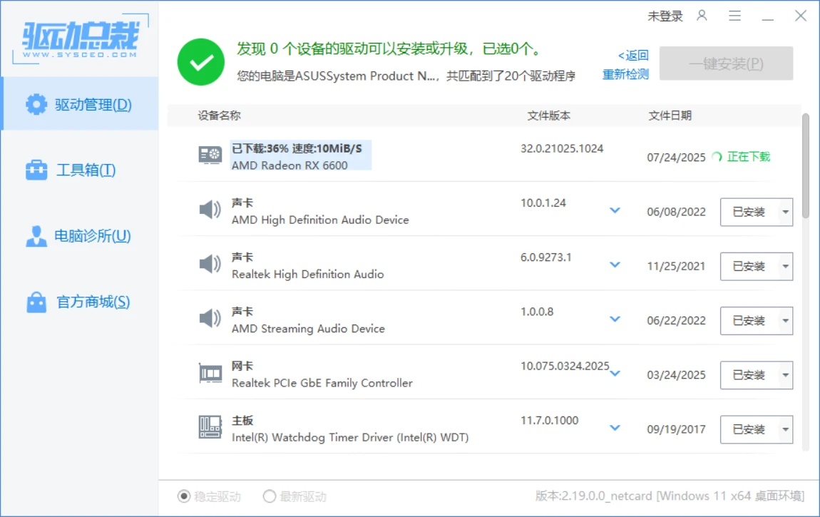 2、离线驱动更新【云端驱动库实时更新制,离线若缺驱动请联网安装即可】: